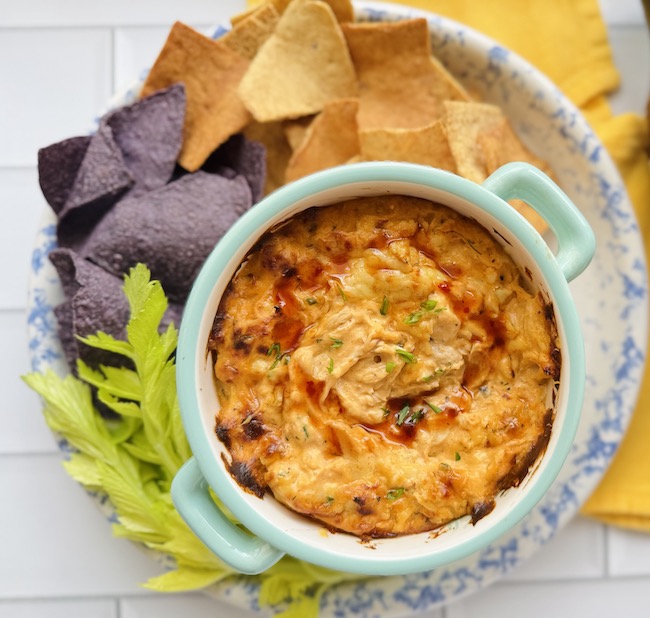Tortilla chips, crackers, and fresh veggies, for serving