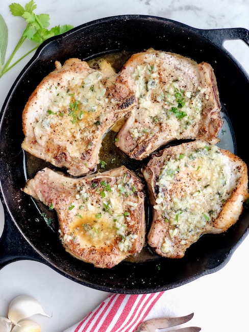Garlicky Baked Pork Chops with Sage Butter