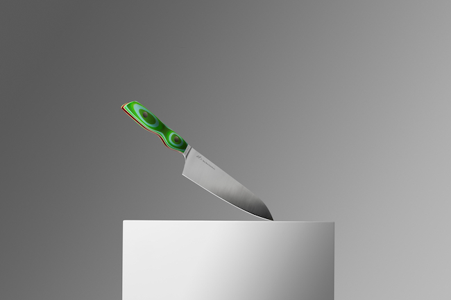 Handles are crafted from a substance known as G10 — a glass-woven fabric impregnated with an epoxy resin originally designed for electronic motherboard components — that’s utterly smooth, heat-resistant and extremely light weight. From chic black to prismatic tones, New West KnifeWorks’ handles “look super cool, and are absolutely indestructible,” Corey summarized.